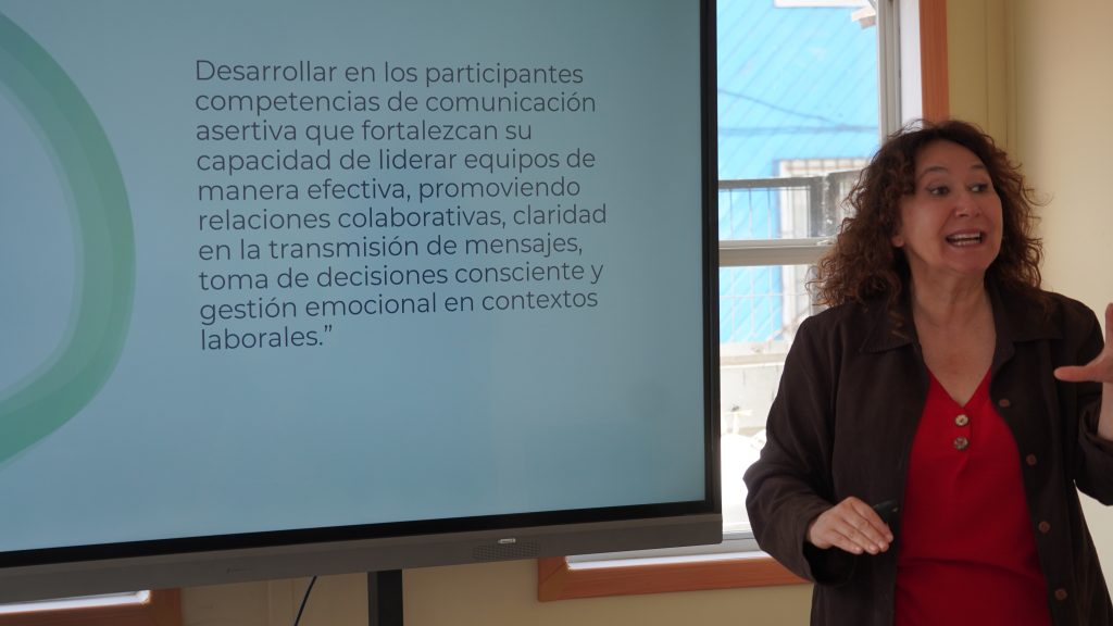 La actividad estuvo compuesta por dos módulos temáticos. El primero, “Comunicación asertiva y liderazgo”, fue impartido por Maritza Fernández, profesora de Castellano con amplia trayectoria en educación y gestión pedagógica. Su enfoque innovador y su experiencia en metodologías participativas permitieron desarrollar un espacio dinámico y altamente valorado por los/as asistentes.