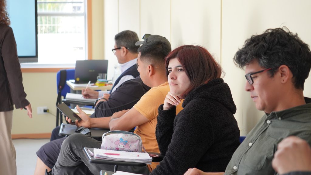 El segundo módulo, “El autocuidado del líder”, estuvo a cargo de Gaby Pérez, psicóloga del Centro de Acompañamiento Estudiantil (CAE) de la sede Pichilemu, profesional con experiencia en ambientes educativos e inclusión. La sesión permitió reflexionar sobre la importancia del bienestar personal como condición fundamental para un liderazgo efectivo y sostenible.