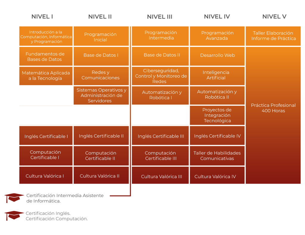 *Las asignaturas certificables poseen contenido que prepara al alumno para certificarse, pero obtener el certificado es voluntario y costeado por el alumno.